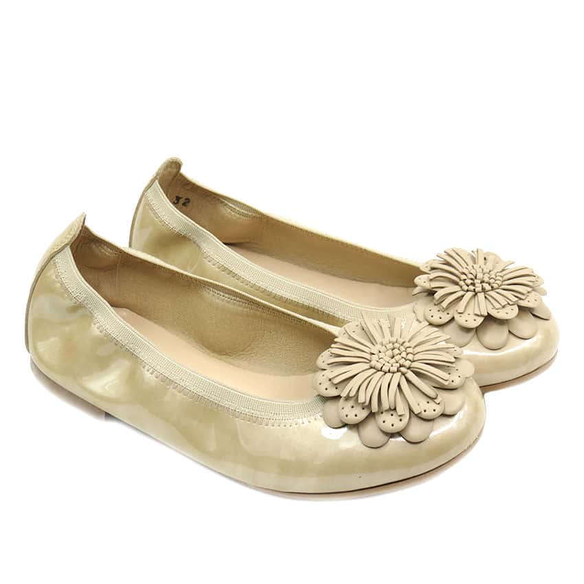 Bailarina de niña en charol con adorno en flor de la marca Clarys.
