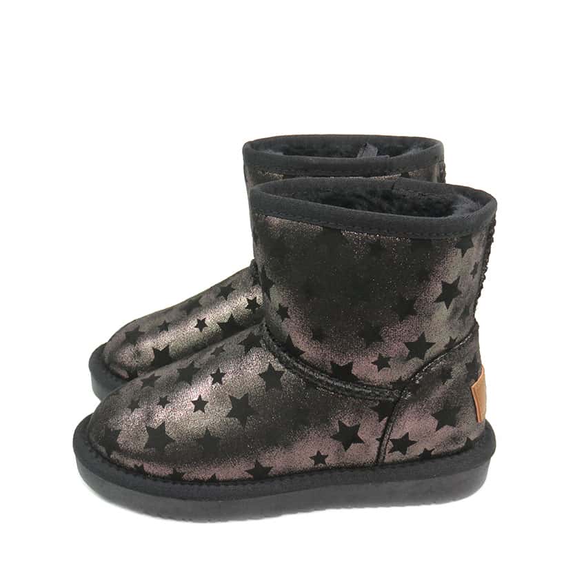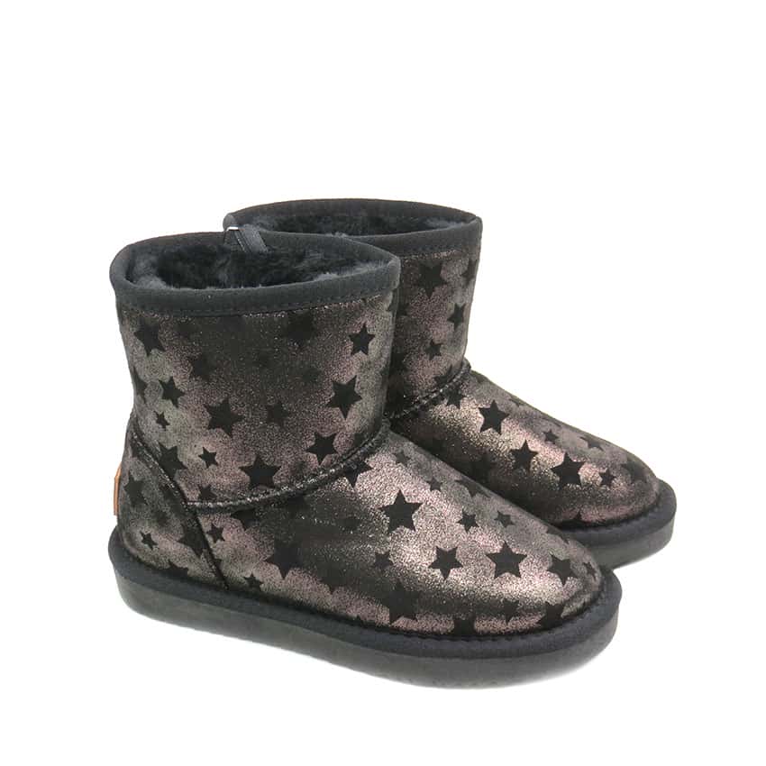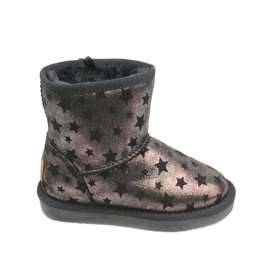 Botas para niña tipo australiana con pelito interior diseñada por Xti kids en color negro con estrellitas.