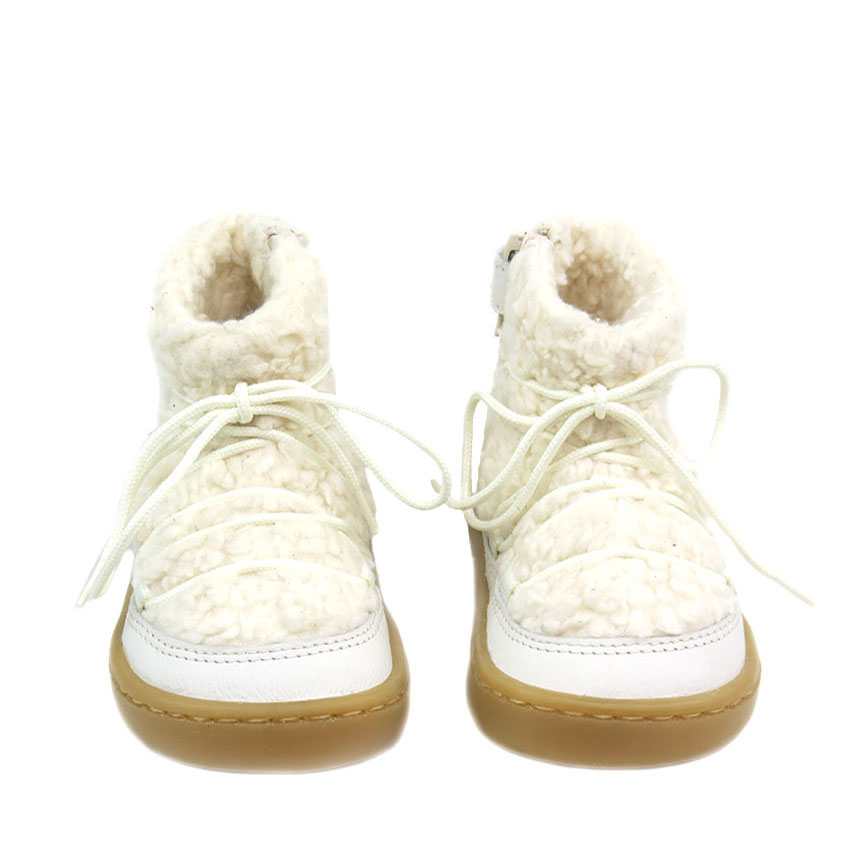 Botas Blanditos Nieve Porcelana. Botas barefoot con borreguito interior . Cierre de cremallera lateral.