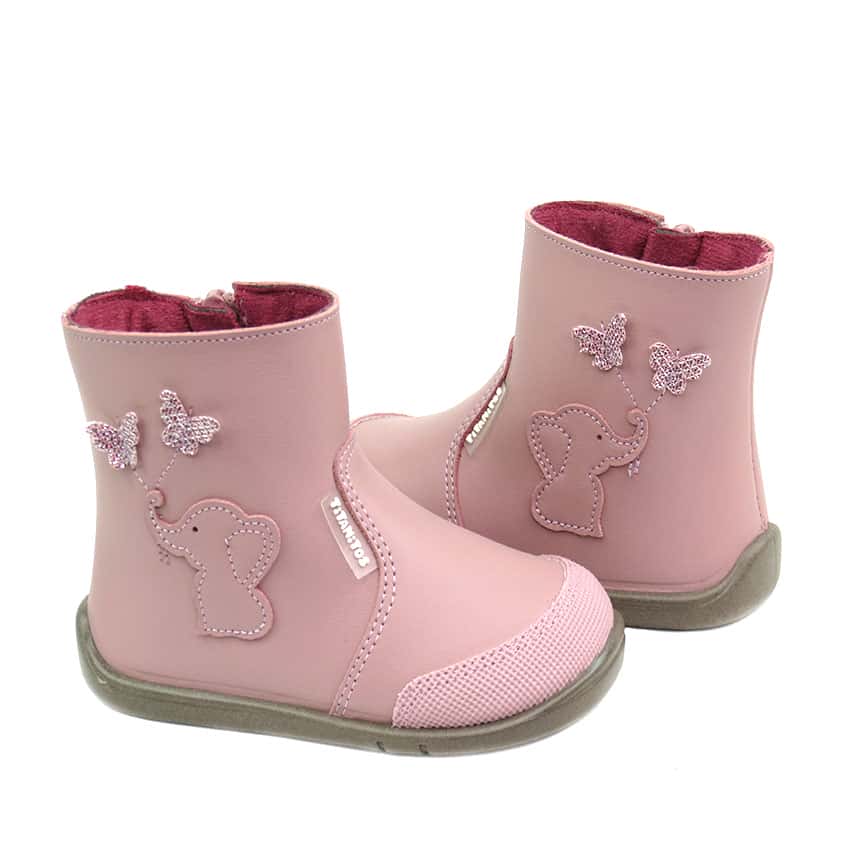 Estas botitas de niñas tan dulces son de la marca Titanitos. Diseñadas en piel lavable color rosa con un diseño original y gracioso que les encantará a vuestras peques y no se las querrán quitar. Unas botas flexibles y super cómodas para el uso diario. Un calzado para protegerse bien del frio. Interior textil y plantilla antibacteriana. Cierre lateral con hebilla. Puntera reforzada para evitar roces. Disponibles del 21 al 28.