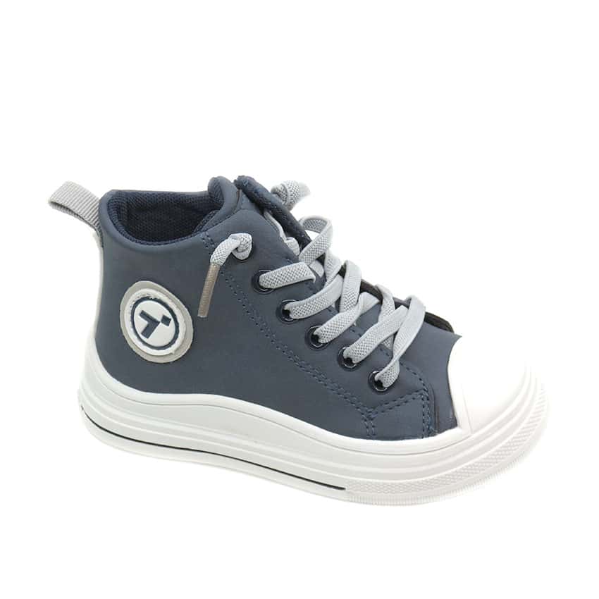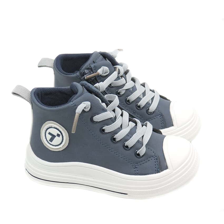 Botas para niños en azul marino con puntera de goma y cierre con cremallera lateral y cordones elásticos.