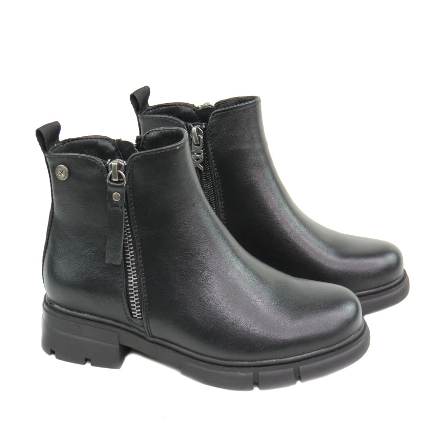 Botin Niña Xti Kids Negro. Botin con dieño actual dieñado en piel vegana color negro con cierre de cremallera lateral.