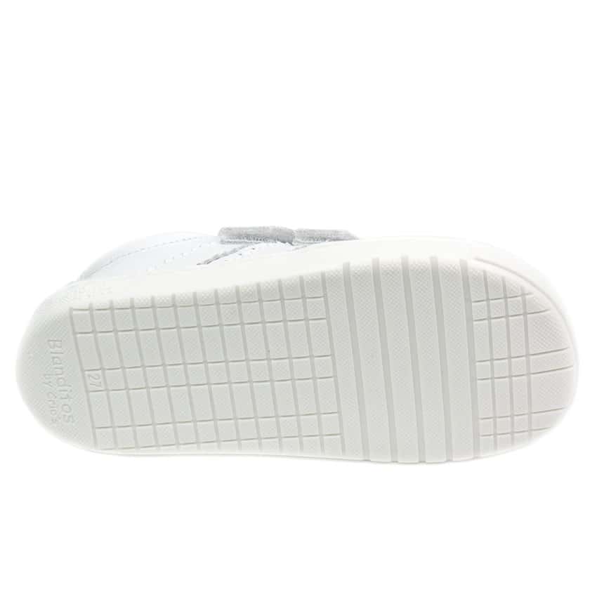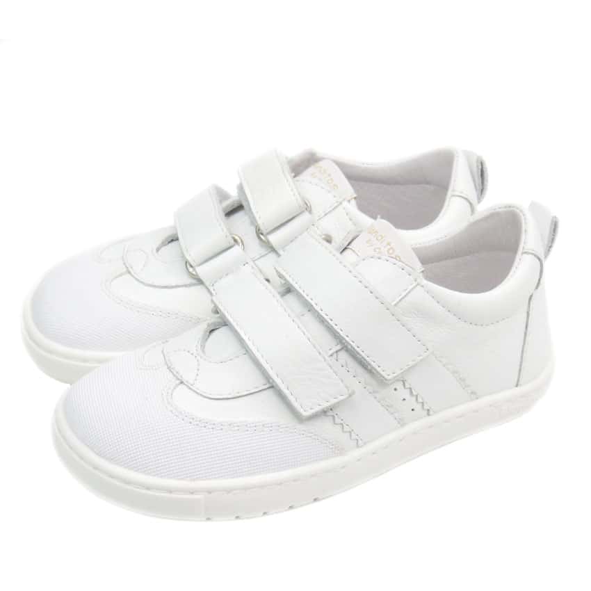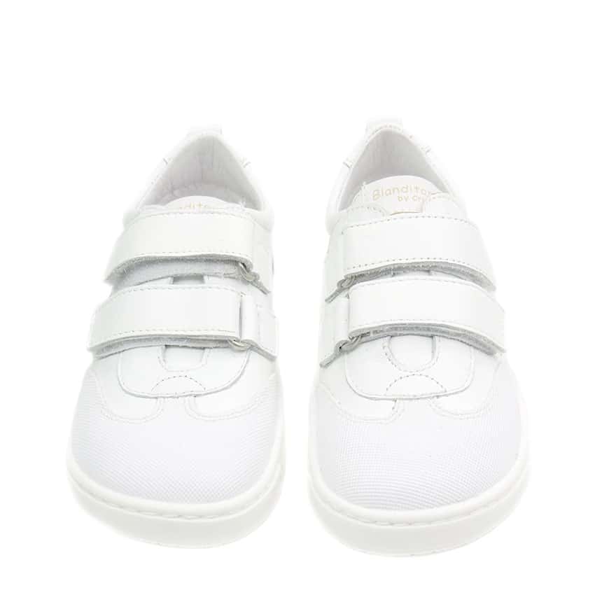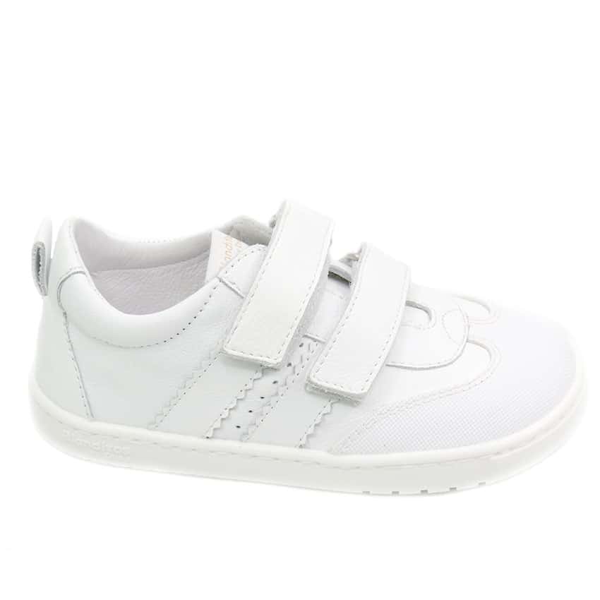 Deportiva respetuosa de Crios Blanditos modelo Marea en piel blanco con velcros ajustables.