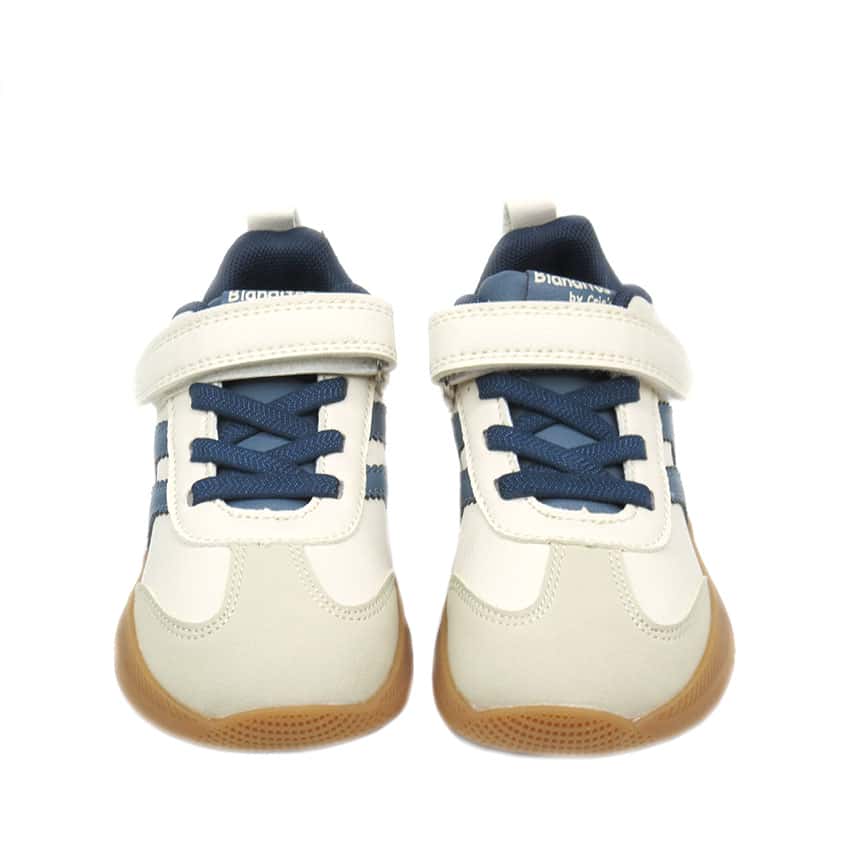 Deportiva Barefoot marca Blanditos modelo Ares en combinación beige con azul . Modelo para pie estrecho-medio.