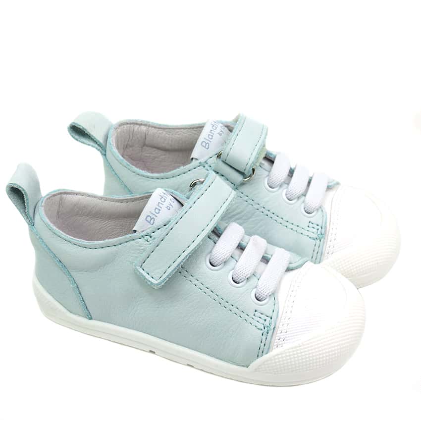 Deportiva respetuosa marca Crios Blanditos. Modelo Ariel en color verde agua. Un calzado flexible , cómodo y sin contrafuertes.