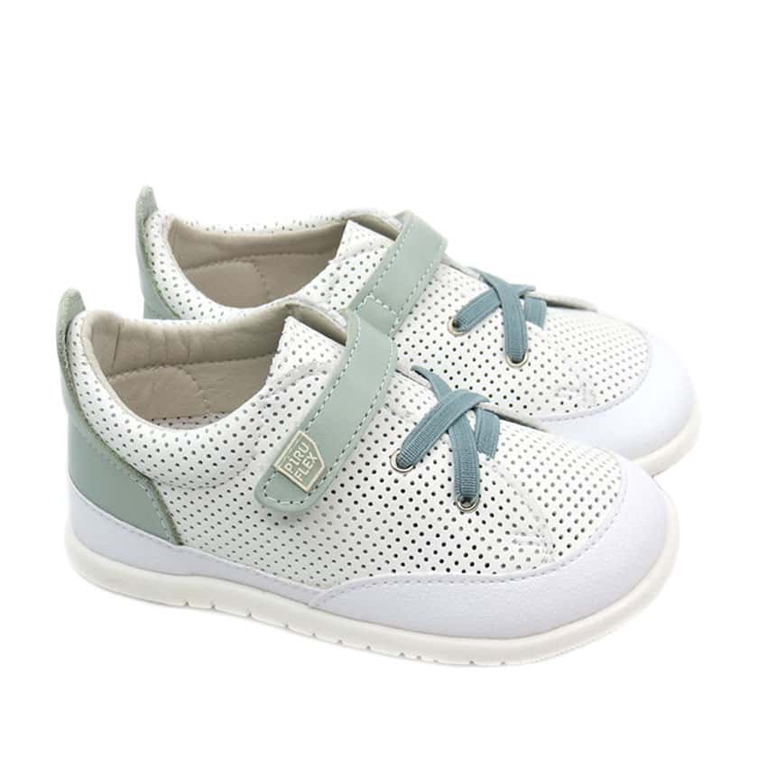 Deportivas respetuosas marca Piruflex combinadas blancas y verde agua. Troqueladas y fresquitas para el verano.