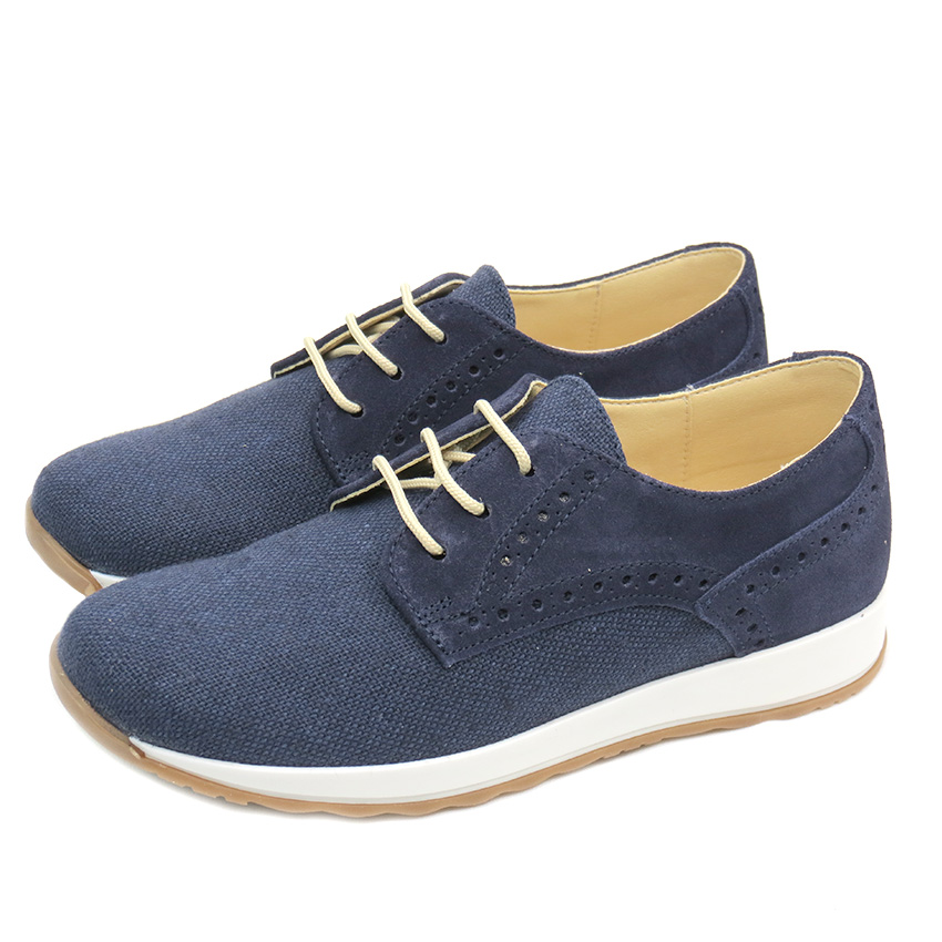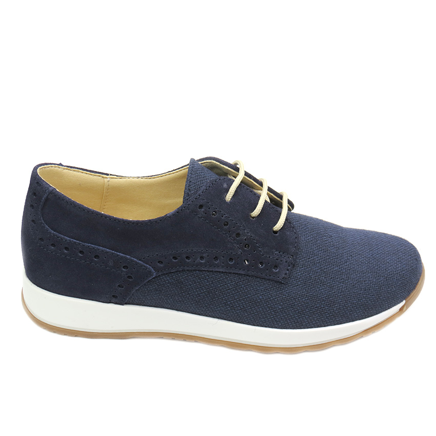 Calzado deportivo para Comuniones de niño. Deportiva fabricada en lino y ante marino con cierre de cordones.