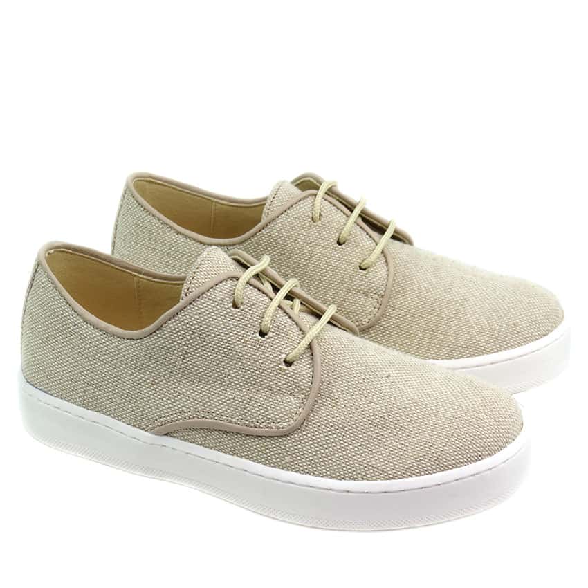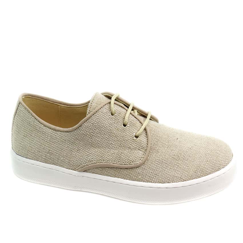 Zapato deportivo para niño de Comunión diseñado en color lino. Una deportiva cómoda y elegante para ese dia tan especial.