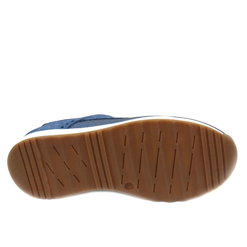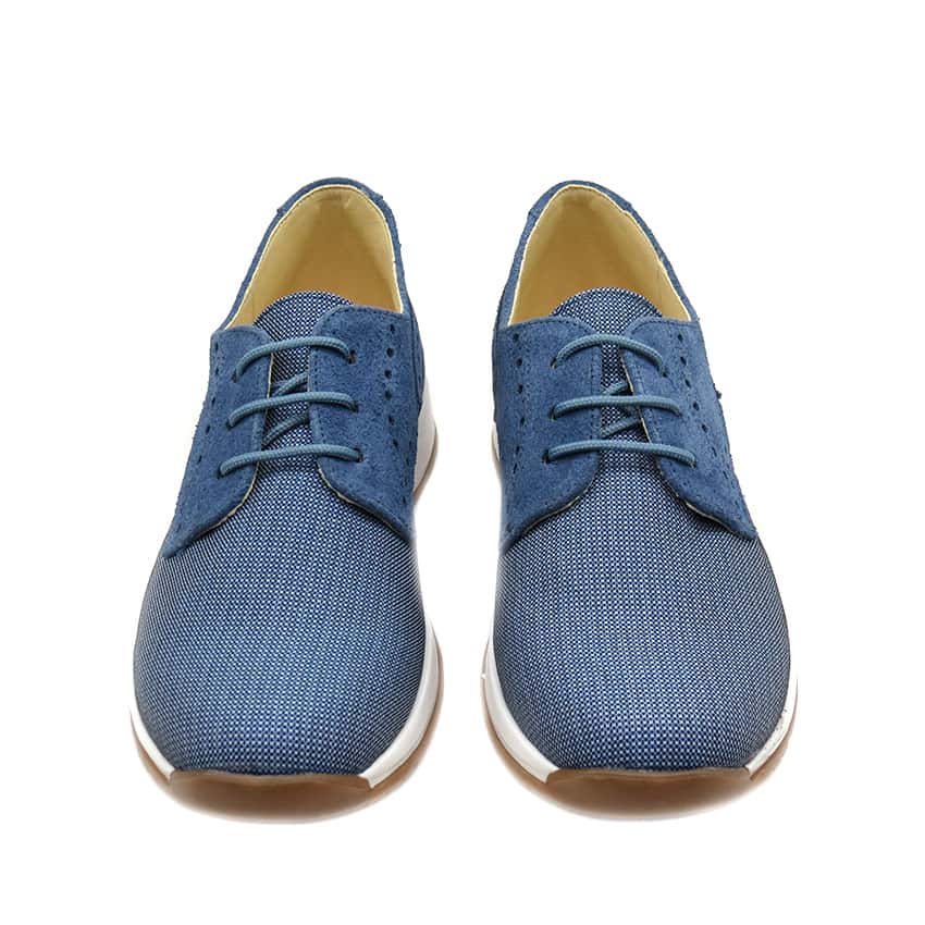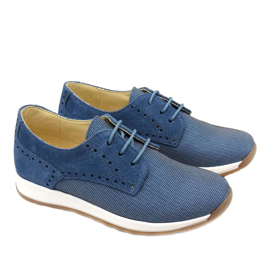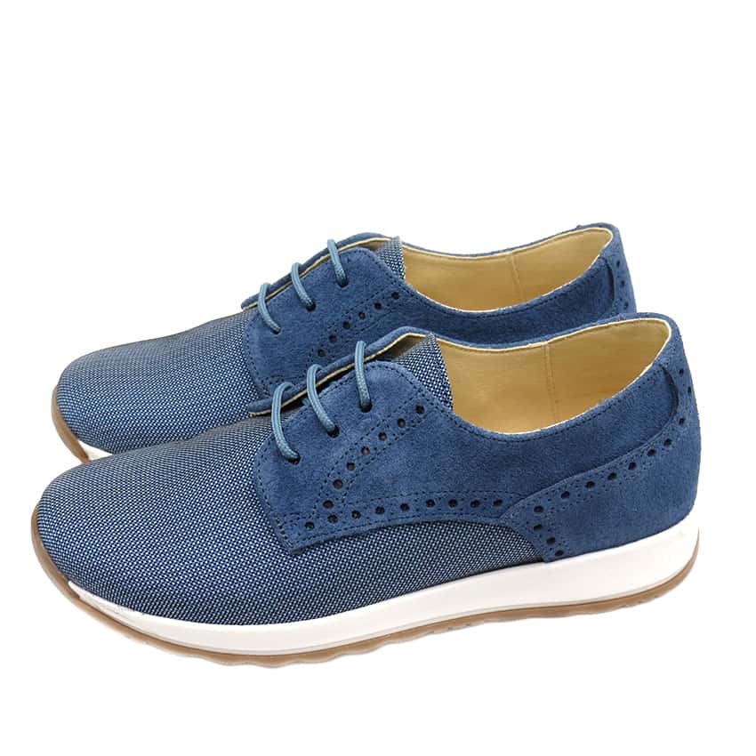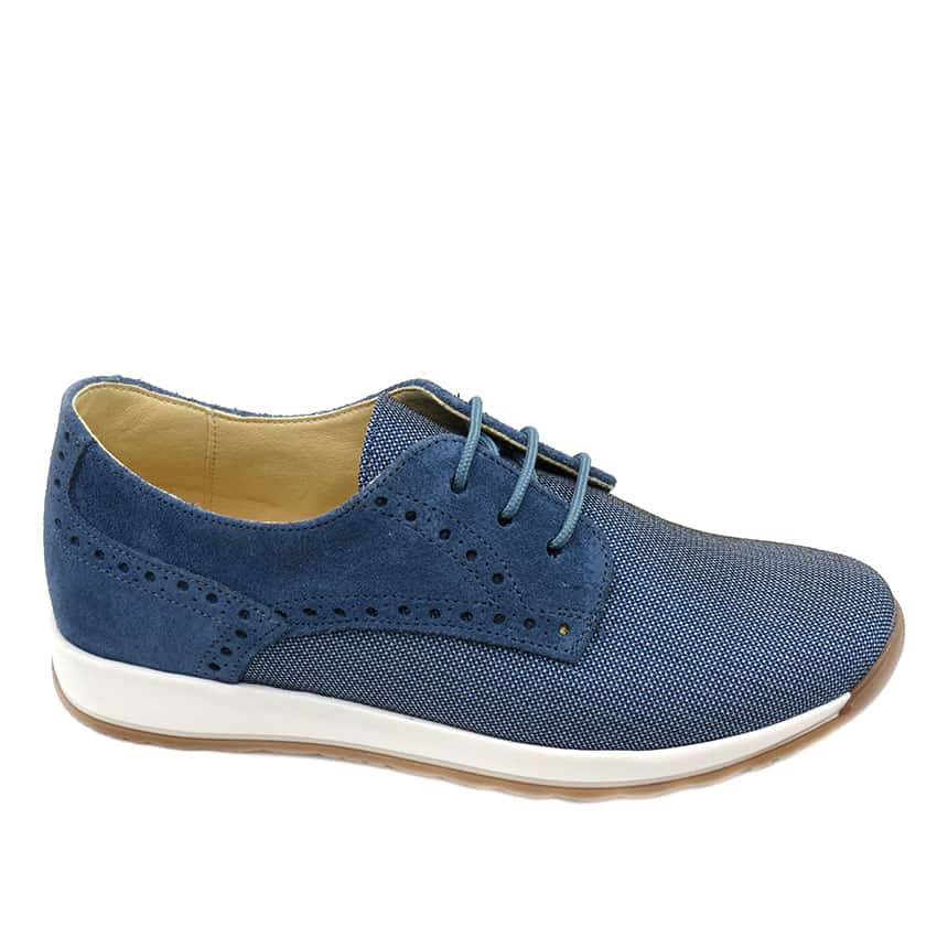 Zapato deportivo Primera Comunión para niño diseñado en lino y ante color azul. Un calzado cómodo y elegante para ese dia tan especial.