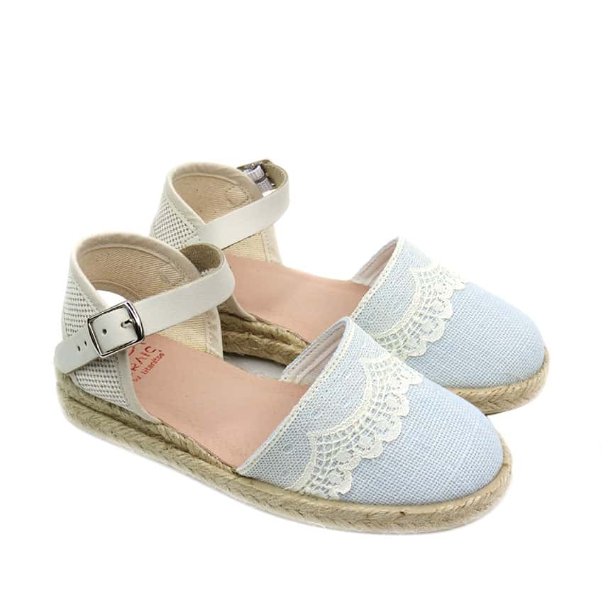 Esparteña para Niña color celeste ideal para celebraciones como bodas , bautizos y comuniones marca Titanitos.