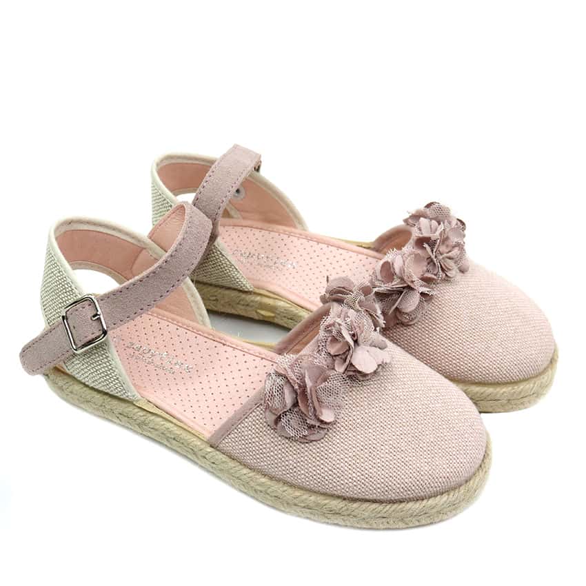 Esparteña de niña en rosa maquillaje con adorno de flores marca Zapy.