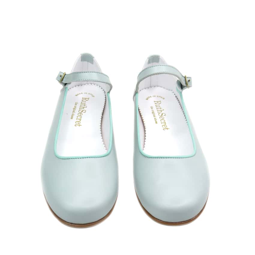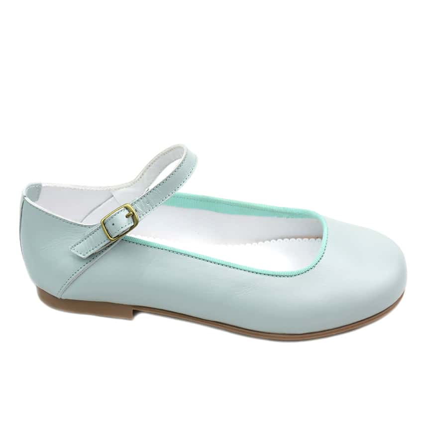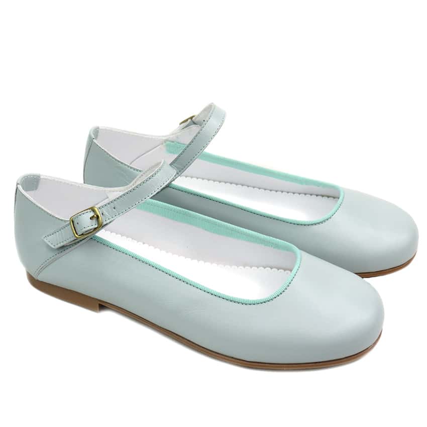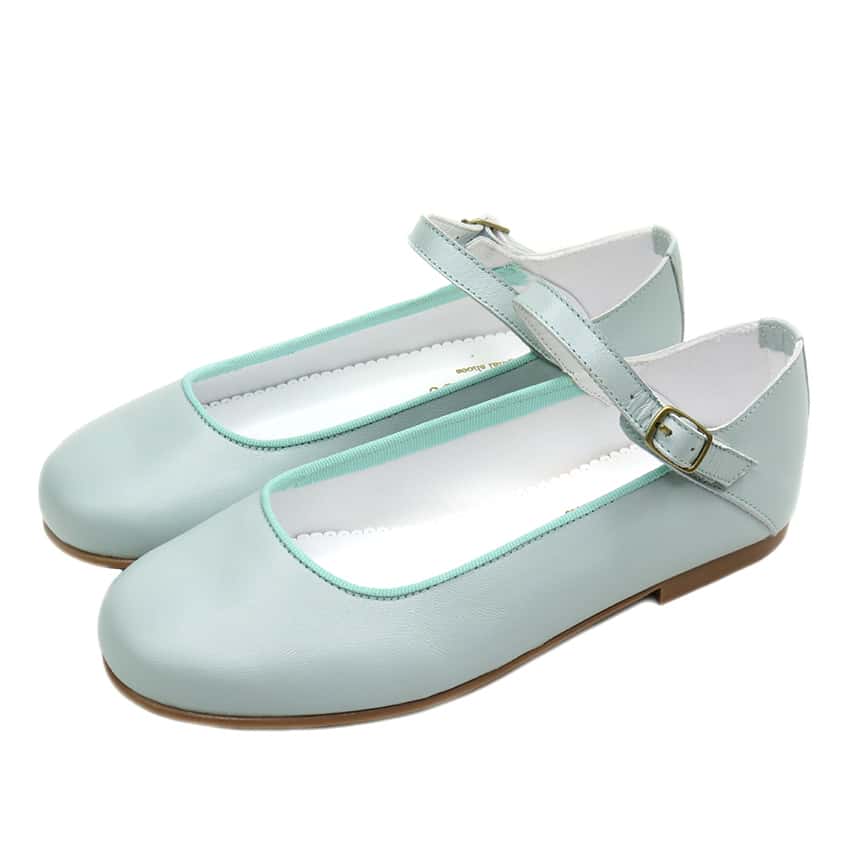 Mercedita de piel para niña de comunión en piel verde agua. Fabricaca 100 % en España .