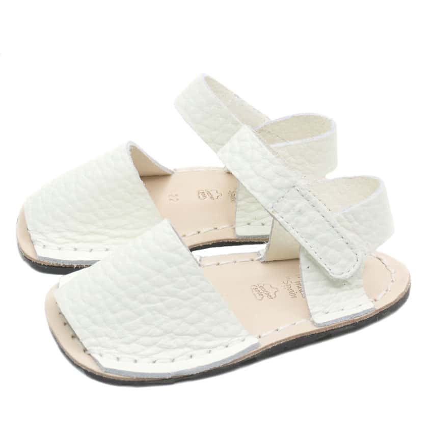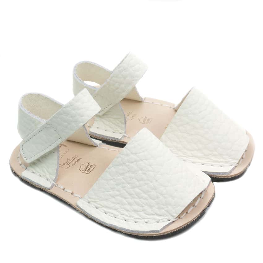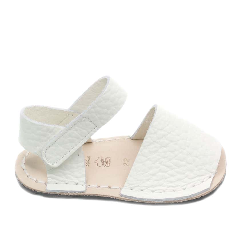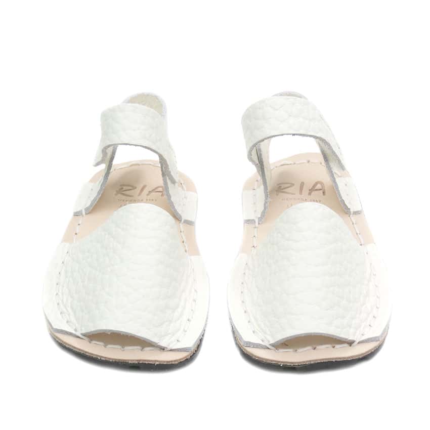 Menorquina respetuosa marca Ria en piel color Blanco .Calzado de verano unisex super flexible.