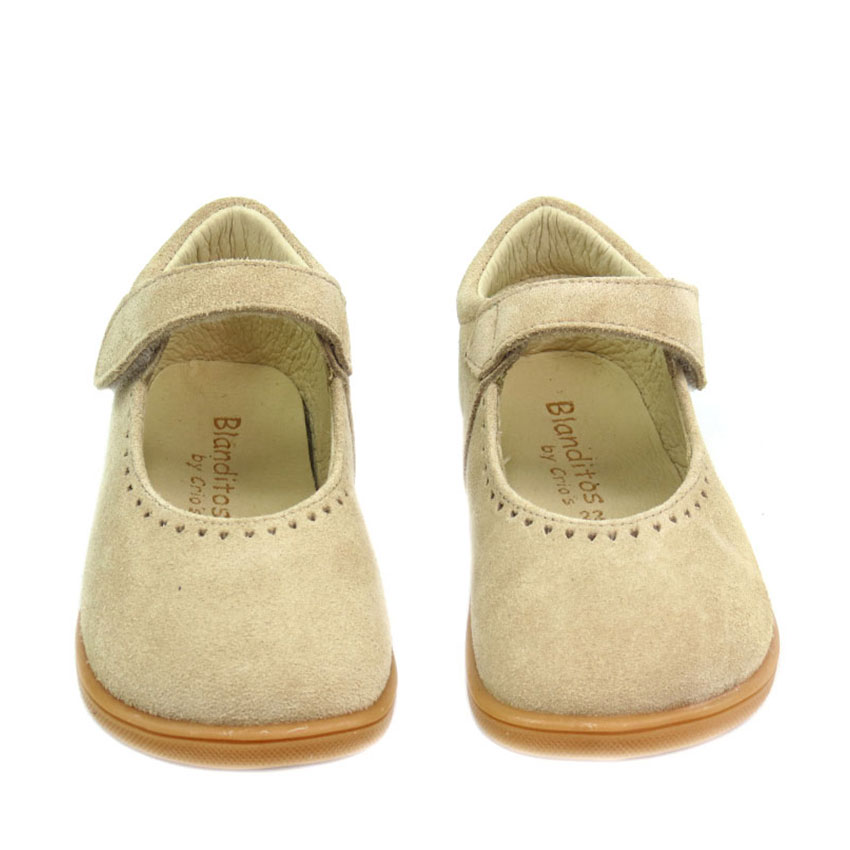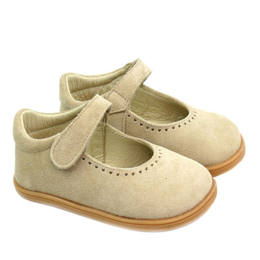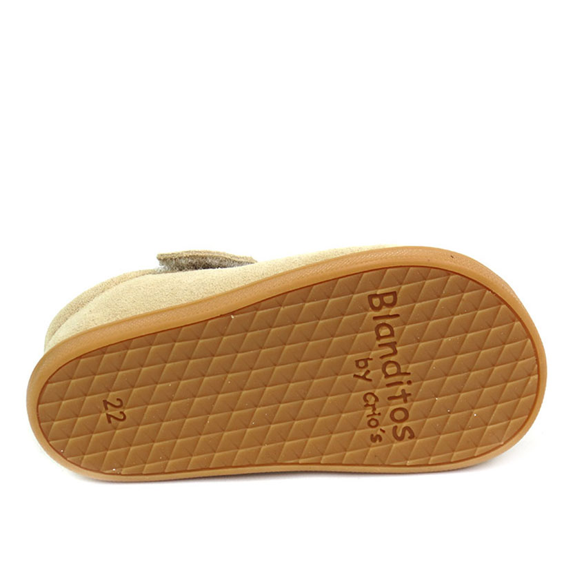 Para esta temporada de Otoño-invierno os presentamos el modelo Delhi de Blanditos By Crios . Esta preciosa mercedita está diseñada en ante color arena y con un picado en forma de corazones en la parte delantera. Suela caramelo antideslizante y con amplitud de dedos para mayor bienestar del los pies de tu hija. Forrada interior de piel sin costuras y cierre de velcro para una mayor autonomía a la hora de calzarse. Sin lugar a dudas una mercedita barefoot con un encanto especial que no puede faltar en tu armario.