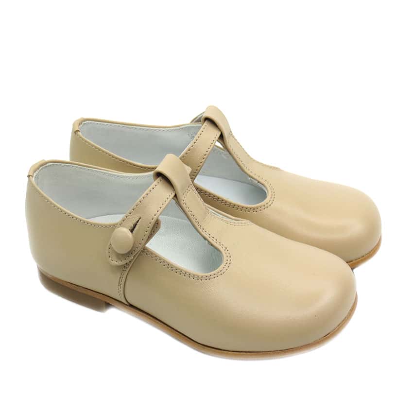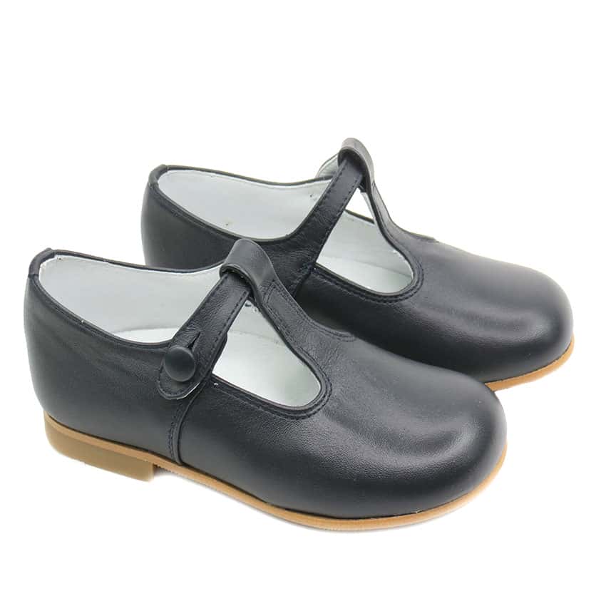 Zapato tipo pepito en piel con suela de vestir con cierre de botón. Fabricación 100 % Nacional.