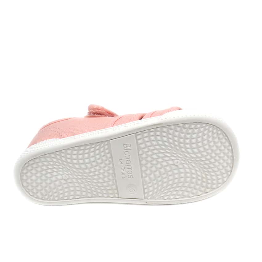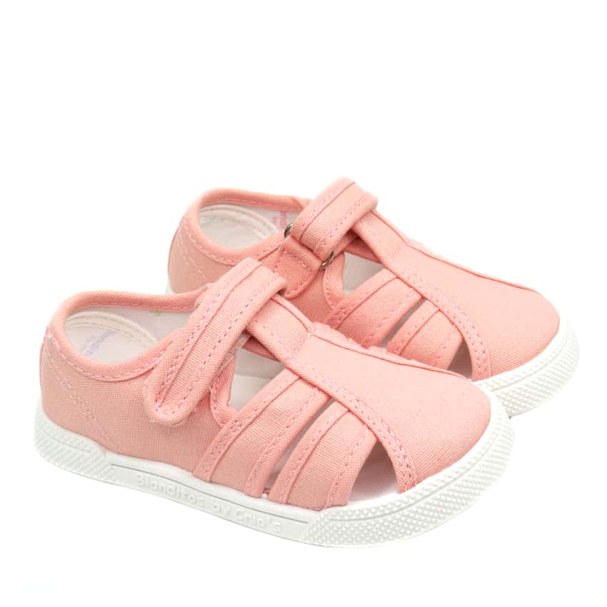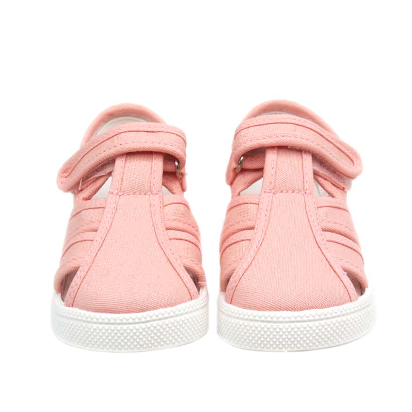 Sandalia de lona respetuosa modelo Mango rosa de Crios Blanditos. Un calzado ligero y cómodo para el verano.
