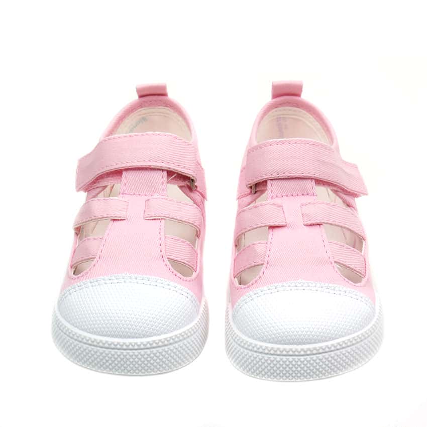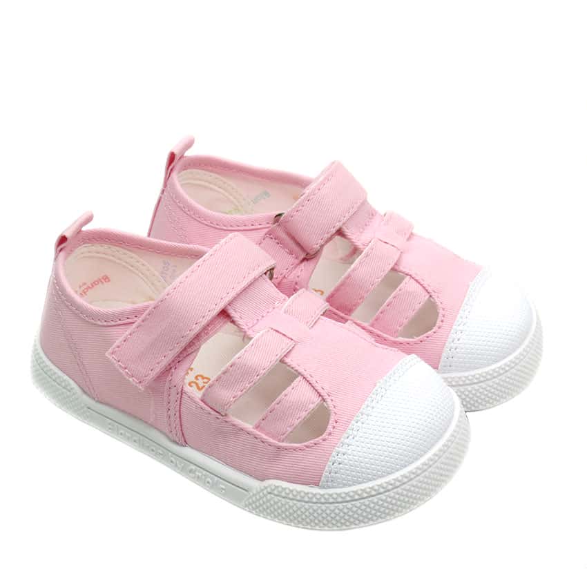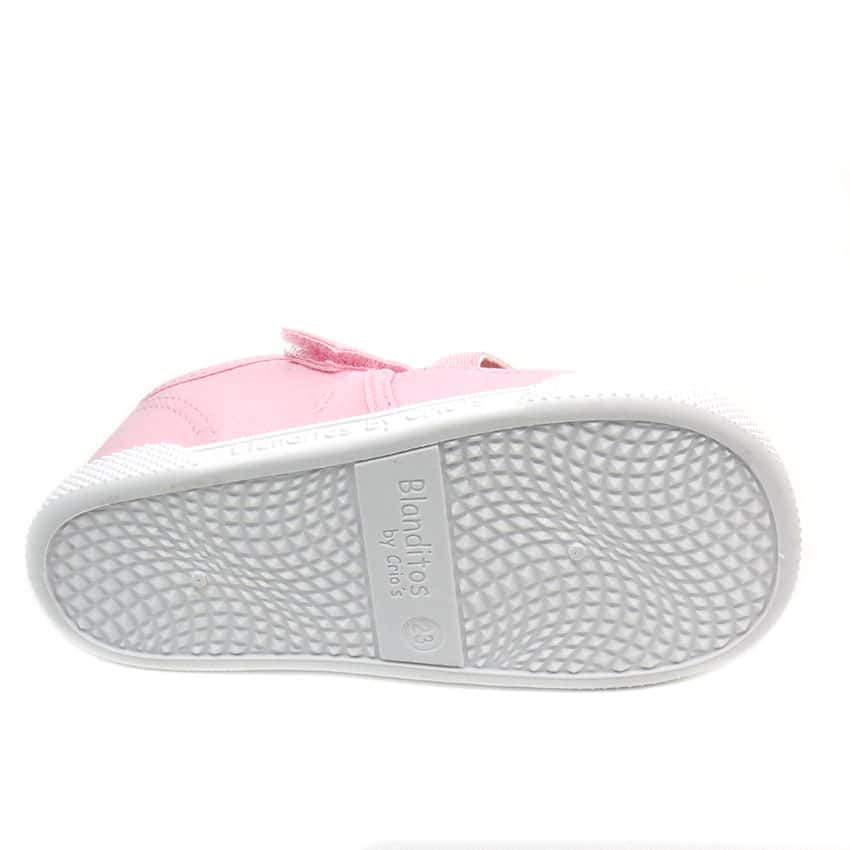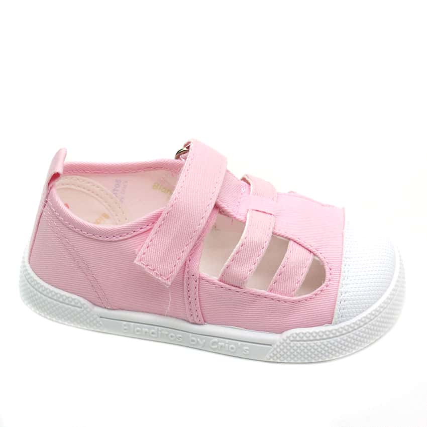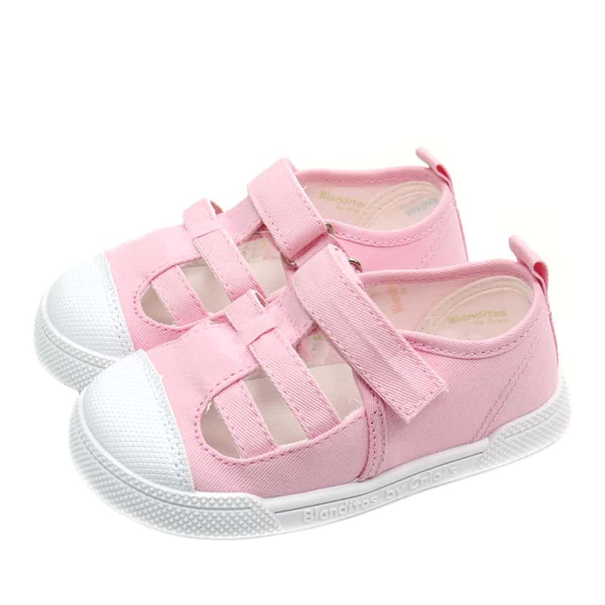 Sandalias de lona modelo lemon de Crios Blanditos. Unas lonas en color rosa respetuosas y super flexibles.