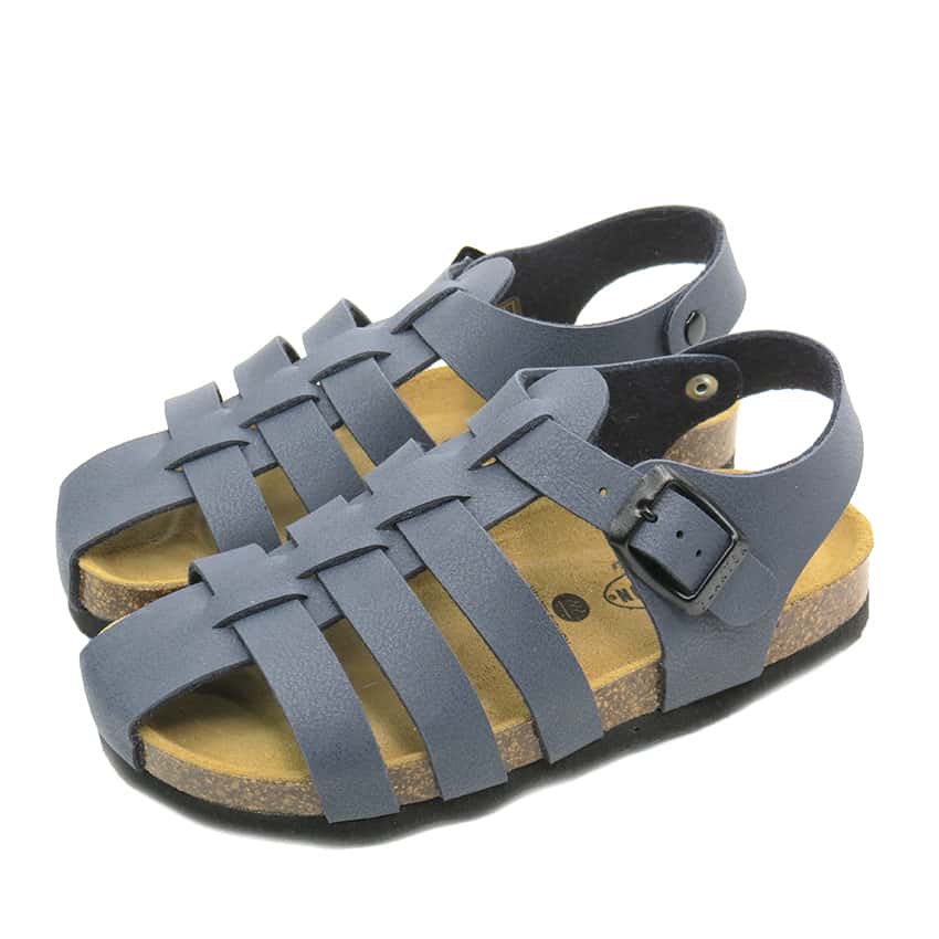 Sandalias para niños en piel color azul con suela Bio. Un calzado cómodo y fresquito para el verano