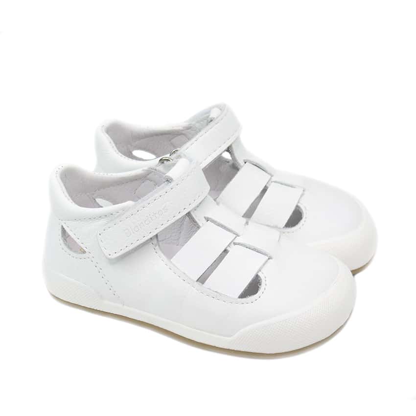 Sandalias respetuosas en piel blanco modelo Océano de Crios blanditos. Un calzado de verano fresquito y cómodo.