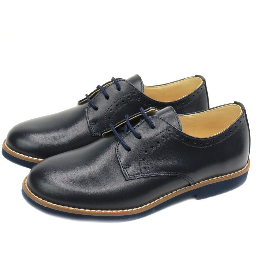 Zapato para niño de Primera comunión fabricado en piel azul marino liso con cordones y suela eva al tono.